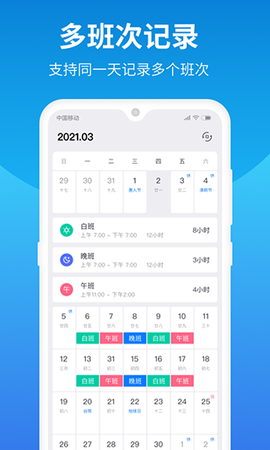 2.支持同一天展示多个班次;