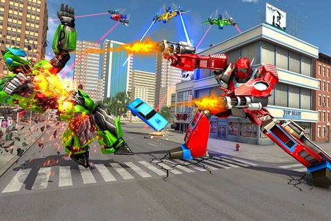 无人机机器人是一款由淘腾互动科技有限公司精心打造的冒险手游,玩法魔性,关卡设计充满挑战!这款游戏将你带入一个创新的探险世界,拥有大量独特形态的机器人,以及丰富多彩的游戏场景,任你自由探索。游戏以现代城市为背景,拥有海量装备和武器,通过任务剧情展开精彩的冒险与战斗。操控一名机器人在繁华的城市中展开刺激的挑战,或与其他机器人进行华丽的变换,与恶势力作斗争!与众不同的是,这款飞行机器人游戏带来了真实的无人机战斗体验,可以让你尽情享受驾驶无人机与机器人之间的热血对决。快来体验这款结合了无人机变形、汽车机器人变形以及机器人格斗等多重元素的游戏吧!充分发挥你的超级能力,打败邪恶势力,成为城市的真正守护者,感兴趣的朋友们赶紧下载体验吧!