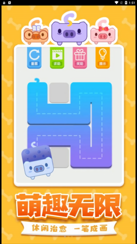 2. 操控小猪角色一笔绘制完整路线,若遇谜题阻碍可随时启用提示功能,辅助解谜进程。
