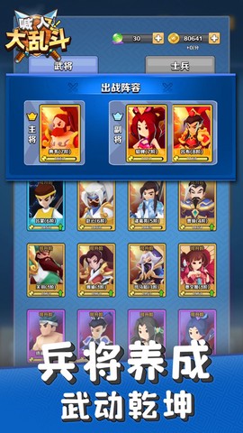 喊人大乱斗是一款以三国题材为背景的休闲策略手游,通过Q版化历史名将设计与轻度竞技玩法结合,为玩家提供兼具趣味性和策略性的移动端体验。游戏采用即时操作与阵容养成的双核机制,玩家需在动态战场中调配武将阵容,同时通过资源管理强化角色属性,实现战术与成长的双重维度突破。