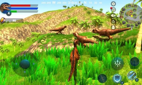 2、但想成为食物链顶端的霸主可没那么容易。你需要不断攻击其他恐龙来获取经验值升级,就像玩RPG一样,你的迅猛龙会越来越强。